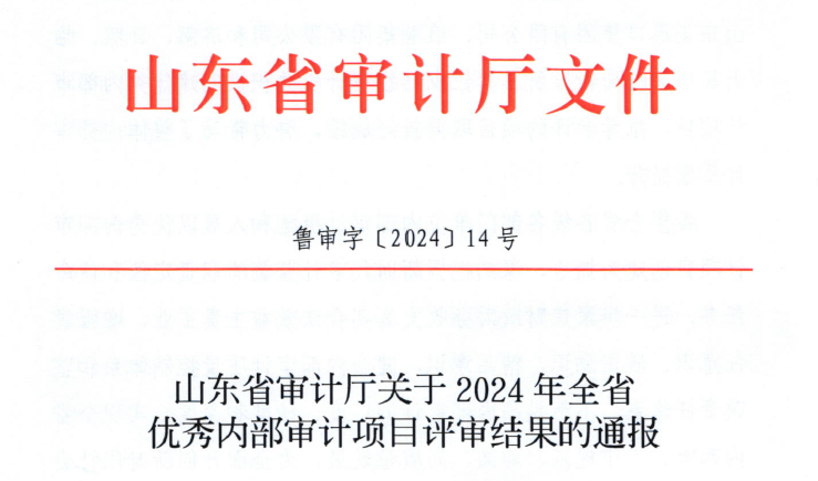 2024年全省优秀内部审计项目评审是为充分发挥优秀内部审计项目的示范引领作用,全面提升内部审计工作质量和水平,山东省审计厅根据《山东省内部审计项目质量评审办法》,组织的对省属单位和各市审计局推荐的优秀审计项目进行的评选活动。评审经过初评、复评2轮评审,共评出115个全省优秀内部审计项目,其中一等奖33个(省级单位11个),二等奖35个(省级单位12个),三等奖47个(省级单位21个)。