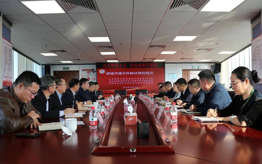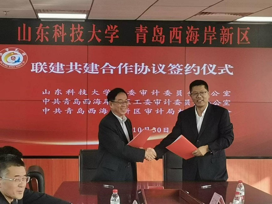 为认真贯彻落实习近平总书记“坚持科技强审,加强审计信息化建设”的重要指示精神,深入学习贯彻党的二十大和二十届三中全会精神,促进政府机关党建与高校党建有机融合,开创政府国家审计与高校内部审计协同发展、互利共赢的新局面,发挥双方各自资源特点、人才优势、专业特长,共享双方的实践经验和理论研究成果,提升双方党建工作质效和业务能力,10月30日,学校党委审计办与西海岸新区工委审计办签署了联建共建合作协议。