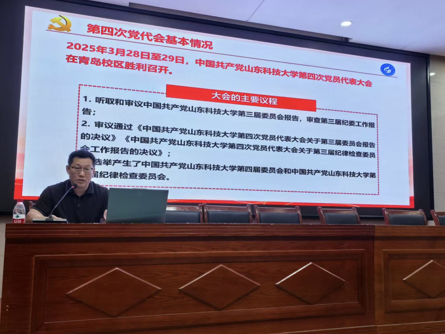 刘华伟副处长深入浅出地阐述了学校第四次党代会召开的重要背景、核心主题以及其对学校未来发展的关键指导作用。系统回顾了自第三次党代会以来,学校在改革发展进程中所取得的显著成就,同时客观分析了当前面临的挑战、存在的问题以及潜在风险。在此基础上,刘华伟副处长详细解读了学校未来一段时期“一三六八十”的战略布局,并着重强调了确保党代会精神落地生根的具体举措。最后,他寄语全体同学,要锚定目标不动摇,坚守初心,牢记使命,以追求卓越、只争朝夕的精神风貌,努力学习专业知识,为国家的建设发展贡献自己的青春力量。